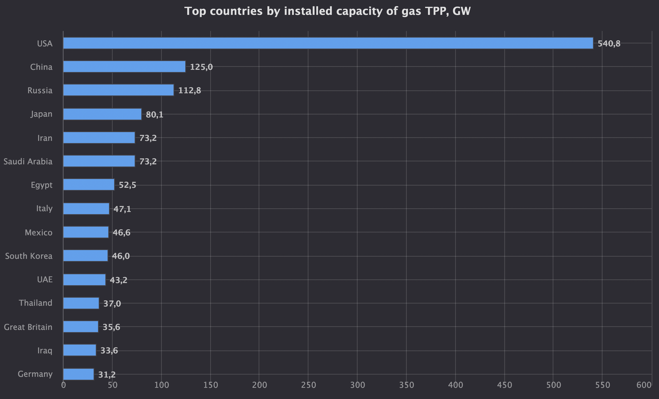 China is the second-ranked in the world by installed capacity of gas-fired TPPs.